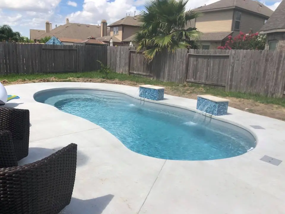 The Leisure Pools Riviera design seems to blend perfectly with any home style and any home site. Its beautiful flowing lines and freeform design are a delight to landscape.